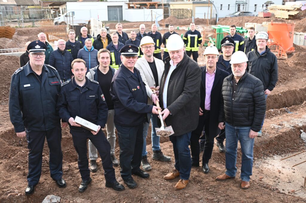 Foto vorne von links: Wehrleiter Jürgen Schmits, Marius Harting (stellv. Löschgruppenführer), Alexander Titze (Baumamt), Andreas Bohnenpoll (Löschgruppenführer), Llaner Wilhelm Luft, Bürgermeister Daniel Hartmann, Dezernatsleiter Stefan Fellmann, Dominik Brokmann (stellv. LGF) sowie Architekt Werner Schmidt.